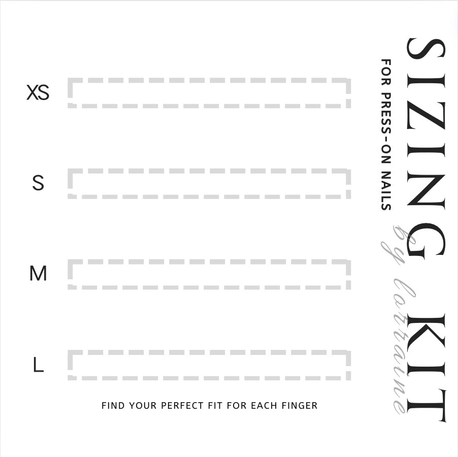 • Select a size from the SIZING KIT, and then grab a false nail beginning with the thumb, to cover your natural nail for comparison.